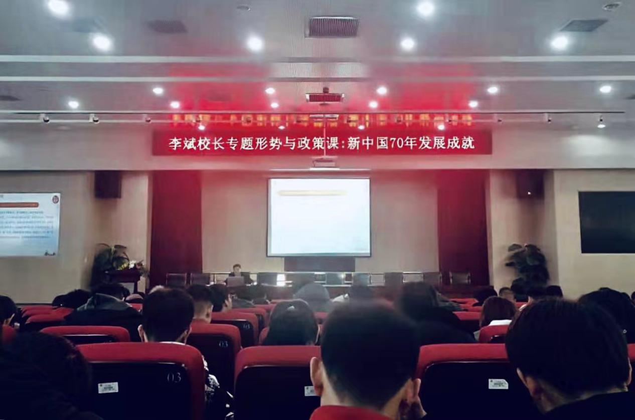 2019年12月13日下午3:00校党委委员、副校长李斌在图书馆二楼B201报告厅为我院师生主讲政治理论课——新中国70年发展成就。