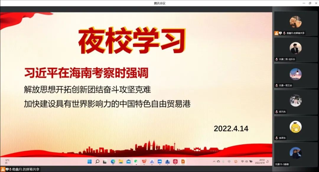 2022年4月14日21:00,9001cc金沙以诚为本学生第二党支部通过腾讯会议开展了以“学习习近平总书记在海南考察时的重要讲话精神”为主题的线上学习。本次学习的主持人为党员葛鑫月同志,参加本次学习的有二支部全体党员。
