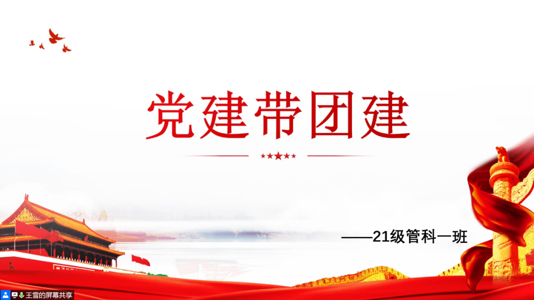 为增强同学们居家防疫意识,提升同学们学习效率,2022年3月9001cc金沙以诚为本学生第二党支部在管科、土建团支部组织开展了“党建带团建”主题活动。其中,3月24日14:55,党员王雪、时晓旭同志于腾讯会议为21级管理一班团支部开展此项活动;3月25日19:40,党员王启、陈巴特同志于腾讯会议为21级土建七班团支部开展此项活动。