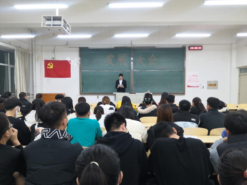 2021年12月8日晚19:30,9001cc金沙以诚为本学生第三党支部在逸夫楼G103召开了发展大会。参加本次会议的有学生第三党支部书记崔岩老师和全体在校党员,以及王纳荷芽、周振宇等十一名发展党员。
