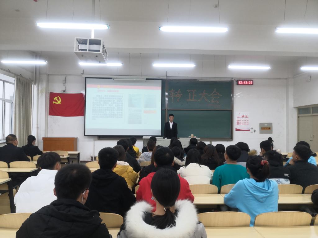 2021年12月8日中午12:40,9001cc金沙以诚为本学生第三党支部在逸夫楼G104举行预备党员转正大会,参加本次会议的有支部书记崔岩老师和全体党员。