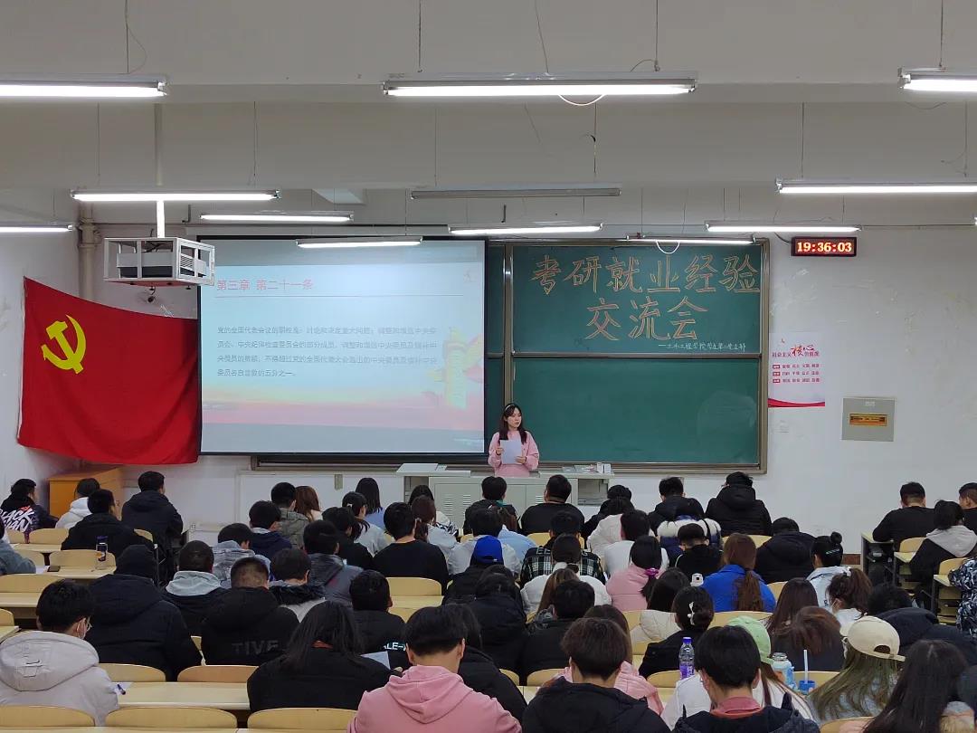 首先,由党员李承浩、朱春伟、白添一、高雪同志依次为大家讲解党章第二章第十八条和党章第三章第十九条至第二十二条的内容。其中,党员白添一同志对调整和增选中央委员会进行重点讲解,党内选举中的调整和增选是指按照规定的形式和程序对党的委员会,包括党的纪律检查委员会组成人员采取的一种组织措施。通过党员同志们的讲解,我们对党章有了更加深刻的理解。接着,正式进入本次接待主题。党员刘奕菲同志就考研与就业相关问题展开讨论,她以交通工程和工程管理两个专业在未来专业方向选择以及专业考研事项为中心,通过视频播放的形式我们了解到学硕与专硕在各方面的区别。刘奕菲同志的讲解让我们对考研有了更深层的认识。此外,本次接待特别邀请四位优秀学生为大家解答在考研及就业方面的困惑。齐娜娜同学和殷文帅同志分享了他们在大学四年中的学习经验和保研的注意事项。孙超和朱博同志讲到:在工作中掌握专业知识十分重要,同学们一定学好专业课程,为未来的工作做好准备。