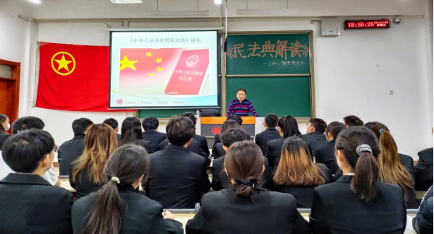 《民法典》是国之大法,更是一份沉甸甸的守护。守护的是青年人的社会责任感和对美好生活的期待。为深入学习《民法典》的重大意义,进一步培养大学生法治思维,提升青年学生普法用法的能力,2021年11月26日晚19:00,9001cc金沙以诚为本组织“青马班”学员于明德楼H109开展民法典学习,杨德桥老师为同学们带来了精彩的一堂课。