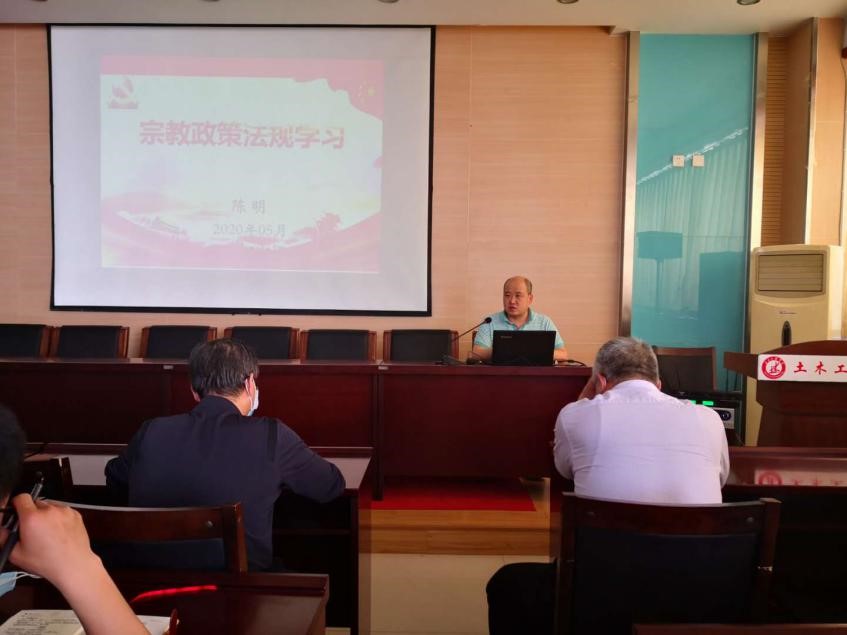 5月29日下午,9001cc金沙以诚为本在逸夫楼B404组织开展全院教职工政治理论学习,党总支书记陈明作了题为“宗教政策法规学习”的专题报告。