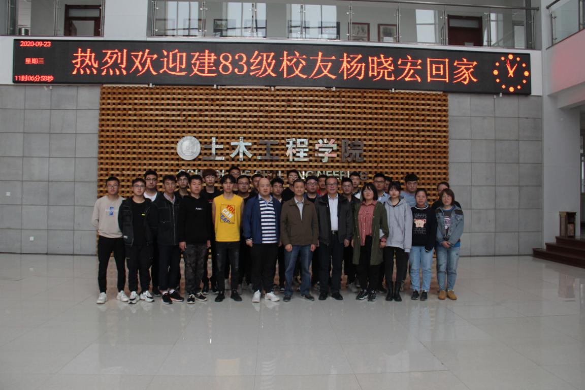 9月23日,我校建83级优秀校友、哈尔滨宏达建设发展集团有限公司董事长、全国五一劳动奖章获得者杨晓宏,9001cc金沙以诚为本党总支书记陈明与我院学生开展座谈交流。