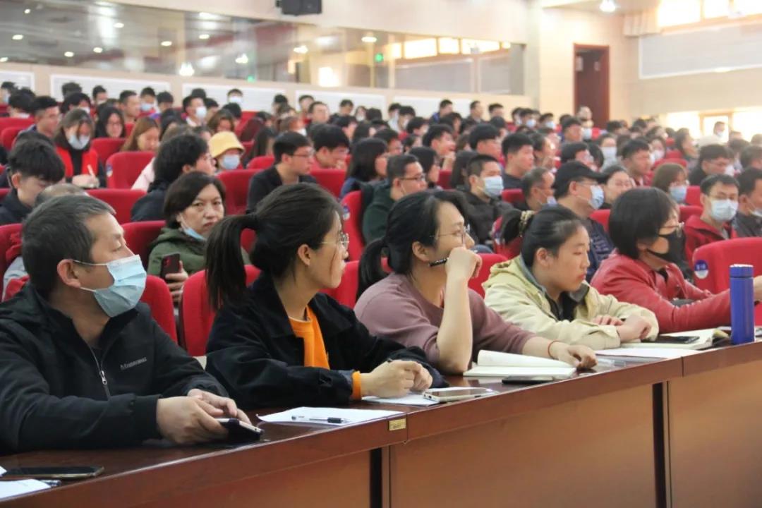 郭海同志围绕“党史学习教育的目的意义,党史学习教育怎么学,党史学习教育如何开展”三个方面进行具体阐述。他指出,党史学习教育要注重用党的奋斗历程和伟大成就鼓舞斗志、明确方向,用党的光荣传统和优良作风坚定信念、凝聚力量,用党的实践创造和历史经验启迪智慧、砥砺品格;学院全体党员要做到学史明理、学史增信、学史崇德、学史力行,学党史、悟思想、办实事、开新局,以昂扬姿态奋力开启全面建设社会主义现代化国家新征程,以优异成绩迎接建党一百周年;结合学院工作实际,在党史学习教育中要坚持“点、线、面”相结合,即:“读、学、讲、炼、访、践、服、评、唱、做”十措并举,加强党的建设一条线贯穿,坚持党员领导干部为主,党史学习教育覆盖全体党员、师生。