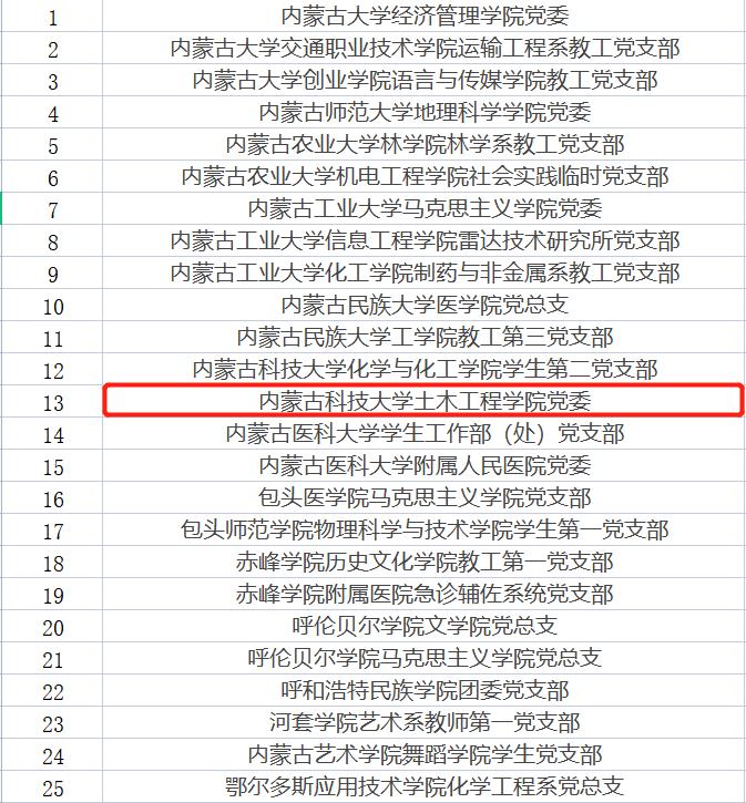 全区高等学校先进基层党组织