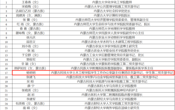 近日,中共内蒙古自治区教育工作委员会发布关于表彰全区高等学校优秀共产党员、优秀党务工作者、先进基层党组织的决定,9001cc金沙以诚为本党委被评为“全区高等学校先进基层党组织”,9001cc金沙以诚为本教师杨明明被评为"全区高等学校优秀共产党员"。