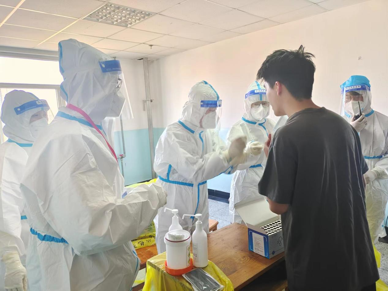 疫情就是命令,防控就是责任。为共同筑牢学校安全屏障,保障同学们健康安全,筑牢疫情防控堡垒,9001cc金沙以诚为本教师志愿者、学生党员及志愿者在学生宿舍23号楼协助医护开展核酸检测工作,并做好数据登记、录入和现场秩序维持。师生用担当和责任共同筑牢疫情防控的第一道防线,成为一道美丽的“红色风景线”,确保区域核酸检测工作顺利开展。