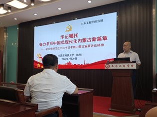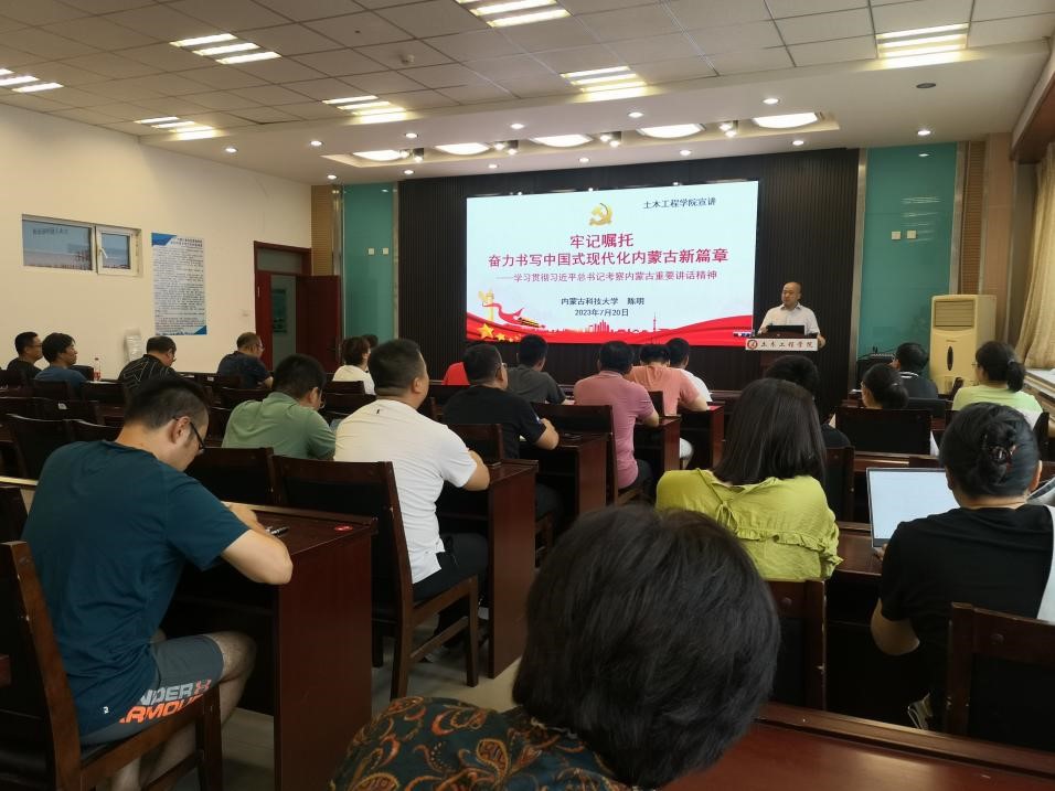 为全面深入学习贯彻习近平总书记考察内蒙古重要讲话精神,扎实推进学习宣传贯彻工作,2023年7月20日16:30,校党委委员、副校长陈明于逸夫楼B404开展了以牢记嘱托奋力书写中国式现代化内蒙古新篇章——学习贯彻习近平总书记考察内蒙古重要讲话精神为主题的宣讲活动,9001cc金沙以诚为本全体教职工参加活动。