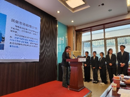 参赛第一组由山水天地团队,展示厦门田园竹坝养老项目,诚信服务面对养老人群;随后为范晨星组、颐年芳华团队分别以面向不同老年群体展开营销策略。前三组项目多针对上班族、中老年人不同群体,通过多媒体小红书、抖音、小程序等、线上线下相结合、邀请明星代言等方式扩大项目知名度与影响范围,将项目划分几期开发建设,实现老年人娱乐设施、祥和安静花园环境、老年人活动中心等全方位、多动能配套设施创新项目。参赛团队引入3D运维视频展示项目内部空间布置、装饰装修风格进行详细介绍。不同团队对建筑外观造型有着别致心裁的设计,新中式、高等住宅、全方位一体化养老院等多样式层出不穷。其次,各评委老师针对项目建设立意、选题角度、营销战略的合理性等问题对团队成员进行提问,学生回答。
