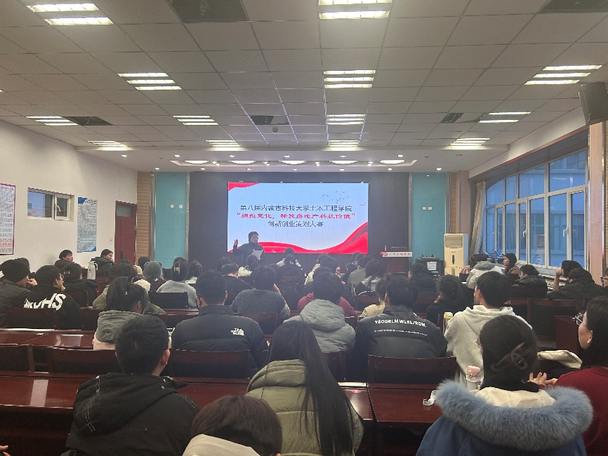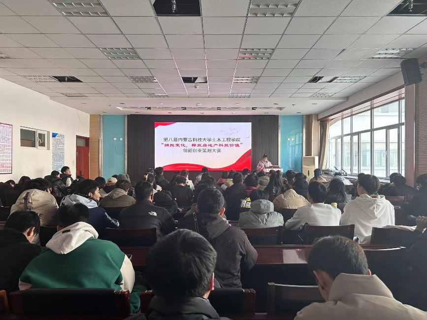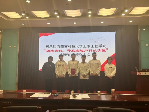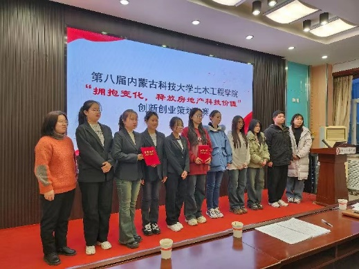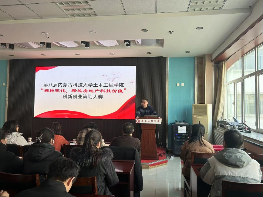 面对深入调整的房地产行业,构建、探索推动房地产领域发展的新模式,聚焦专业、数字智能化、ESC驱动等方向,因此培养具有决策技能和创新能力的人才,以适应房地产行业需求。进一步落实我校实践教育方针,提高大学生创新能力,由9001cc金沙以诚为本主办的第八届“拥抱变化,释放房地产科技价值”创新创业大赛于2023年12月29日在内蒙古科技大学逸夫楼举行。出席此次比赛的有王英浩教学副院长、徐伟、陈蓉、丁玉贤、赵娜、王振华老师并作为本次比赛评委。来自21级工程管理、工程造价专业组成的6组参赛团队,通过视频、PPT的形式展示参赛作品,并根据大赛评委老师提问进行现场答辩最后评选优秀作品。本次大赛本着公平、公正、公开、复杂的原则举行。