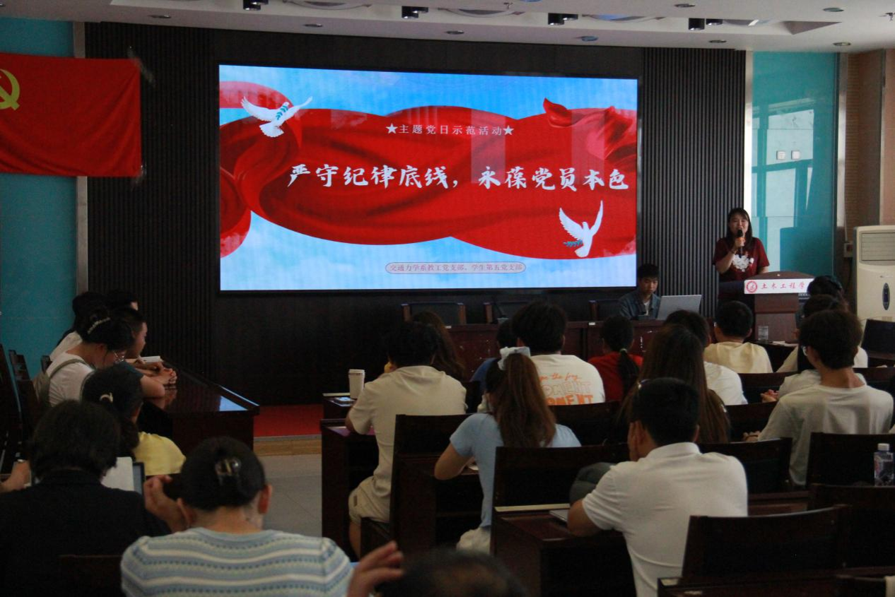 为深入学习贯彻习近平总书记关于党纪学习教育的重要讲话精神,加强党员的自我约束和党性修养,在校党委组织部和9001cc金沙以诚为本党委的指导下,交通力学系教工党支部联合学生第五党支部于2024年7月1日下午3点,在逸夫楼B404举办了“严守纪律底线,永葆党员本色”主题党日示范活动。校内基层党组织代表观摩了此次活动。活动由交通力学系教工党支部书记张新洁同志主持。