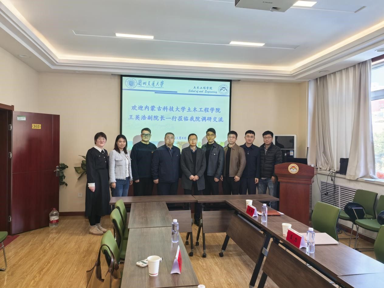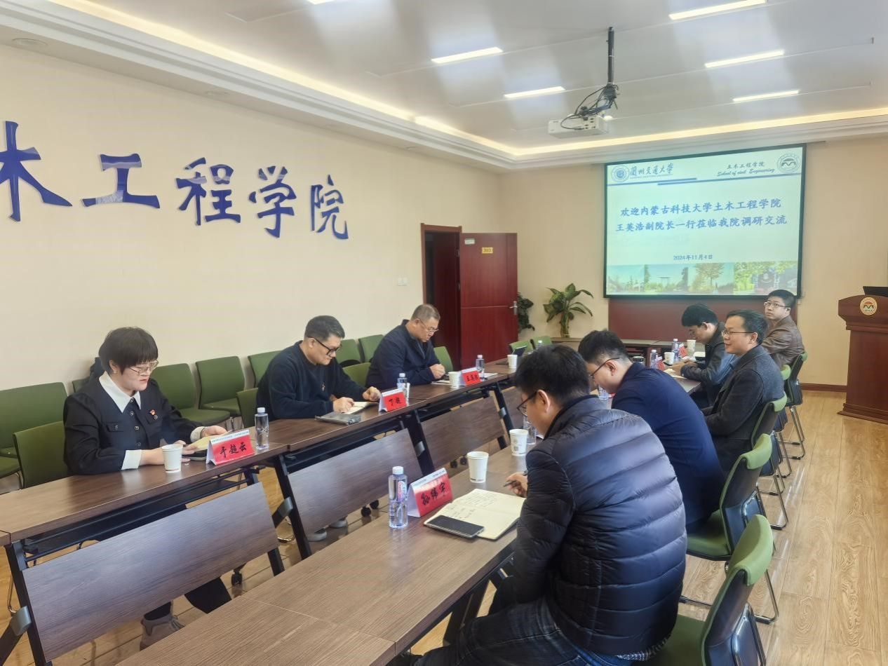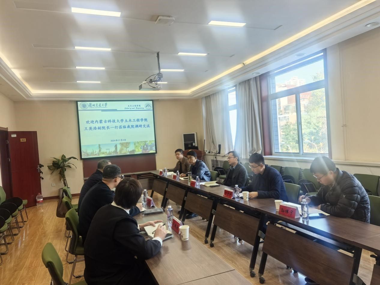 2024年11月4日上午9时,9001cc金沙以诚为本(绿色基建产业学院)副院长王英浩一行人赴兰州交通大学9001cc金沙以诚为本进行调研交流活动。此次交流旨在学习借鉴兰州交通大学9001cc金沙以诚为本在办学理念、人才培养以及党建工作等方面的先进经验。