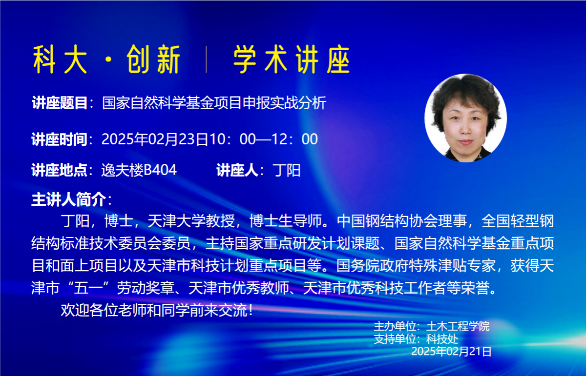 丁阳,博士,天津大学教授,博士生导师。中国钢结构协会理事,全国轻型钢结构标准技术委员会委员,《钢结构设计标准》《高强钢结构设计标准》《民用建筑防爆设计标准》编制组成员,《建筑结构学报》《地震工程与工程振动》编委。主持国家重点研发计划课题、国家自然科学基金重点项目和面上项目以及天津市科技计划重点项目等。在国内外学术期刊发表高水平论文100余篇,授权发明专利10余件。获得中国青年科技奖、国家科技进步二等奖2项,省部级科技进步一等奖4项、二等奖4项。国家精品课程《钢结构》负责人。国务院政府特殊津贴专家,获得天津市“五一”劳动奖章、天津市优秀教师、天津市优秀科技工作者等荣誉。