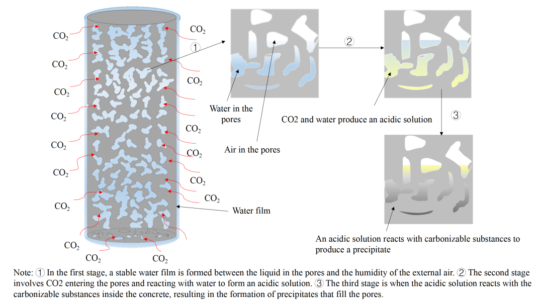 图1 CO2进入到混凝土中扩散过程图