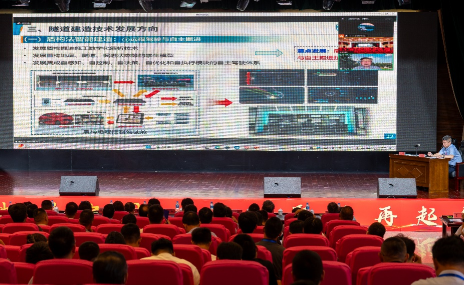 7月20日上午,中国工程院院士、深圳大学教授陈湘生先生,中国工程院院士、西南交通大学教授何川先生(线上),北京交通大学张顶立教授,华东建筑集团股份有限公司总工程师王卫东大师,北城市轨道交通绿色与安全建造技术国家工程研究中心主任杨秀仁大师,北京工业大学陶连金教授,中国矿业大学(北京)江玉生教授等专家学者做了主旨报告。陈湘生院士的报告题目为“地铁地下车站双洞密贴顶管建造技术”,介绍了采用超大顶管方法建造地铁车站的关键技术及科研成果。何川院士的报告题目为“隧道工程智能建造发展展望”,分享了隧道工程领域智能建造的前沿进展。