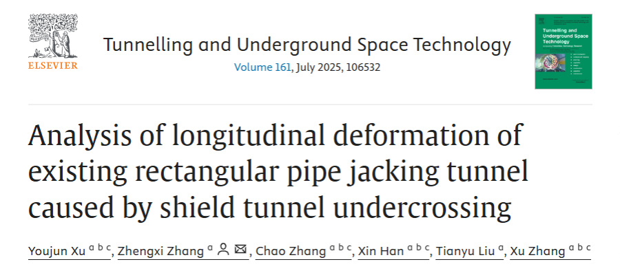 近日,9001cc金沙以诚为本城市隧道与地下工程团队许有俊教授在《Tunnelling and Underground Space Technology》期刊(IF=6.7,中科院1区TOP)发表题为“Analysis of longitudinal deformation of existing rectangular pipe jacking tunnel caused by shield tunnel undercrossing”(DOI: 10.1016/j.tust.2025.106532)的研究成果。该研究提出了地基刚度弱化函数与SP-T模型(一种基于地基刚度弱化的Pasternak - Timoshenko理论模型),并建立了新建盾构隧道下穿既有矩形顶管隧道的纵向沉降预测曲线。该研究系统揭示了等效抗弯与抗剪刚度对纵向沉降的耦合影响机制。通过参数分析发现,发现适当增加隧道埋深、新建与既有隧道之间的垂直间距均可有效减小最大沉降量,而夹角会同时改变既有隧道的最大沉降量与受影响范围。该成果为新建盾构隧道下穿既有矩形顶管隧道纵向变形问题提供了关键理论与数据支撑,是隧道交叉穿越领域的重要进展。