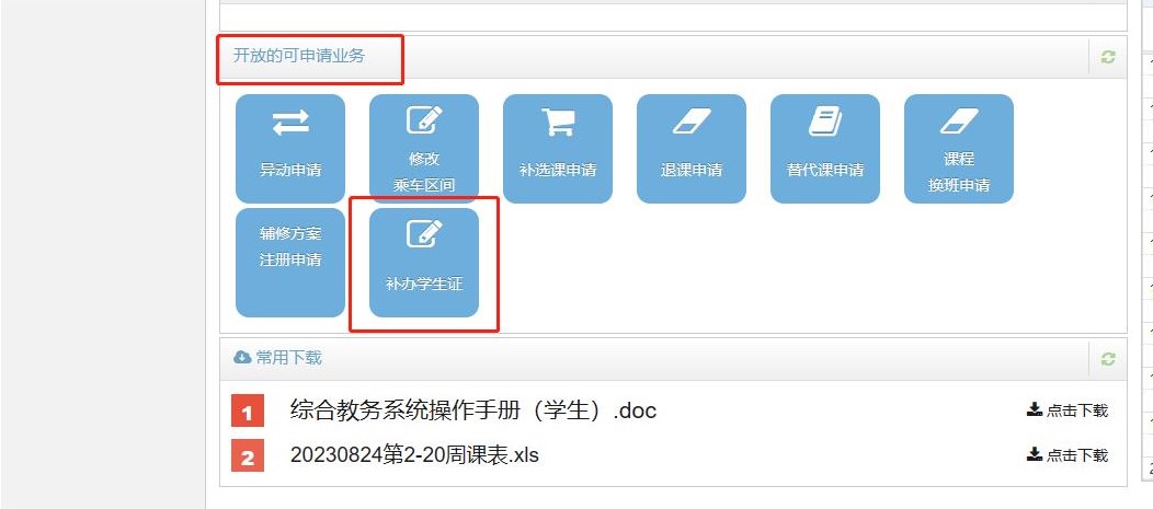 申请补办学生证学生端操作图示
