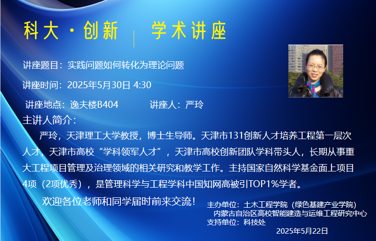 严玲,天津理工大学教授,博士生导师。天津市131创新人才培养工程第一层次人才,天津市高校“学科领军人才”,天津市高校创新团队学科带头人,长期从事重大工程项目管理及治理领域的相关研究和教学工作。主持国家自然科学基金面上项目4项(2项优秀),是管理科学与工程学科中国知网高被引TOP1%学者。